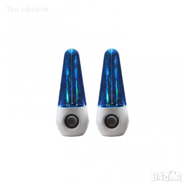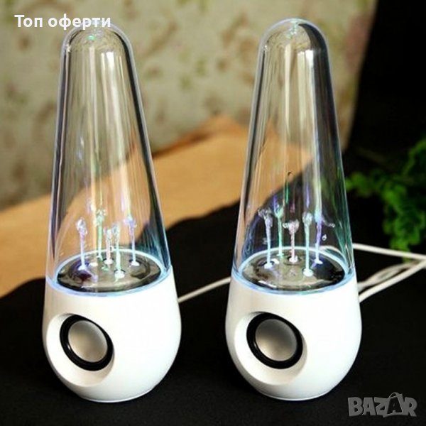 Звукови колонки Water Speakers. Подходящи за компютър, лаптоп, MP3/MP4 плейър, телефон, телевизор и всякакви други устройства с изход за слушалки. Всяка от колонките Water Dancing Speakers има вградени дюзи, които изстрелват фонтанчета в такт с музиката, както и