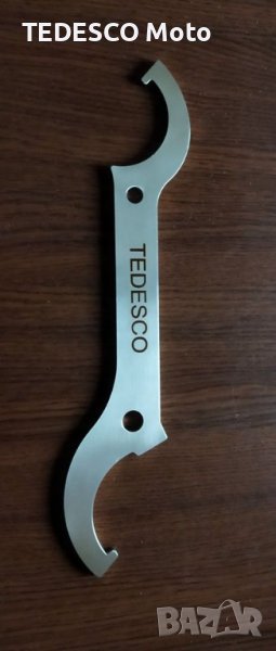 Нов ключ Tedesco® за развиване и реглаж на заден shock на KTM, Husqvarna, Honda, Yamaha, Kawasaki и Suzuki. Изработен е от здрава неръждаема стомана.