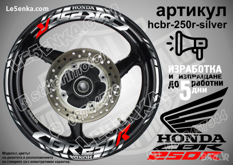 Комплект надписи и кантове за джанти за мотор. Изработват се след поръчка от автомобилно ПВЦ изрязано CUT фолио и са подготвени за монтаж с транспортна лента. При поръчка, моля следва да посочите цолажа на джантите. В случай , че не го направите – ще Ви изпратим комплект за 17 инчови джанти. т.к. повечето модели са с този размер.