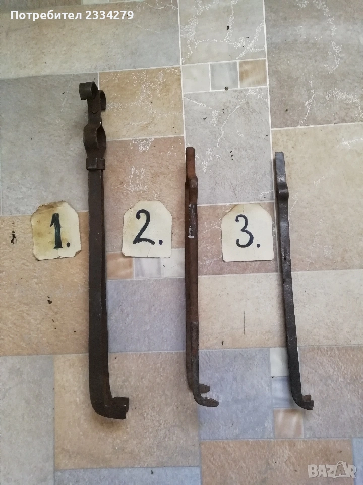 Желязни огрибки за катми и други, ръчно изковани от различни майстори в различни времена. Цени от 7 до 13лв. N:1 размери 48х11см., цена 7лв., N:2 размери 35х11см.,цена 7лв.; N:3 размер 28х9см.,цена 7лв.; N:4 размери 19х6см., цена 10лв.; N:5 размери 17х8см., цена 10лв.