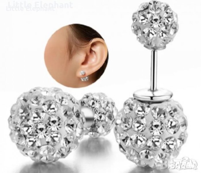 Sale Сребърни обеци топчета с кристали,white/нови → Обява 40222118