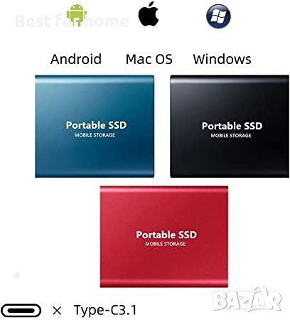 Външен твърд диск за множество компютри Външният SSD е съвместим с компютърни системи за архивиране, настолни компютри, PC, Mac, Windows, Linux, Android и т.н. и поддържа всички видове компютри с USB порт и най-новите лаптопи и смартфони с Type- C порт.
