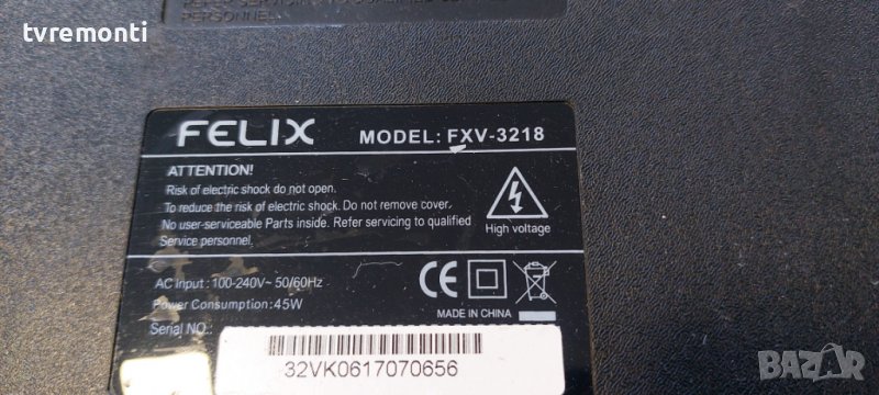 Основна платка , TP.S506.PB818 for FELIXFXV-3218, дисплей LSC320AN10 Борда е гарантирано работещ Демонтиран от телевизор FELIX модел FXV-3218 със счупен дисплей LSC320AN10 тествана от нашия техник
