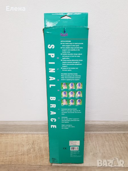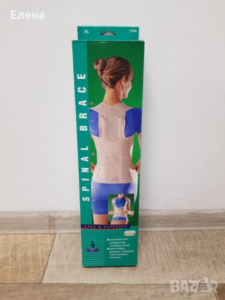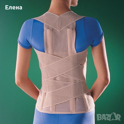 Ортопедичен артикул за поддръжка на дорзо-сакро-лумбалната зона на гръбначния стълб, с вградени шини на нивото на паравертебралната мускултура и кръста. Подходяща за приложение при сколиоза, остеопоротични и травматични фрактури на прешлени, за корекция на стойката на гръбначния стълб в резултат на различни увреждани.