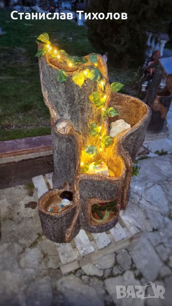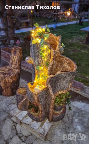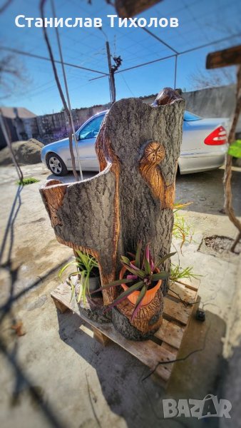 Градински декоративни изделия от щампован бетон имитиращи дърво