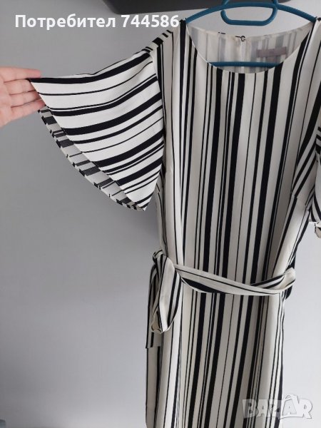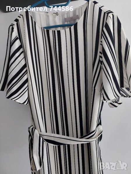 Роклята е обличана веднъж на повод,като нова е.Рокля H&M черно с бяло.Отговаря на номер М,а ето и размерите:дължина:90 см,ширина:45 см.Изпращам с опция преглед и тест.