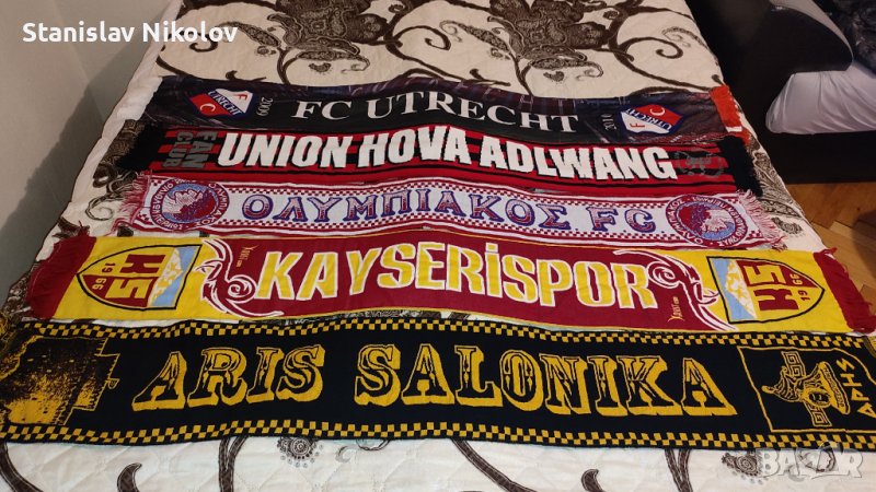 продавам футболни шалове на различни отбори. Шаловете са в много добро състояние. Имам в колекцията си и доста други, които ги няма на снимките.