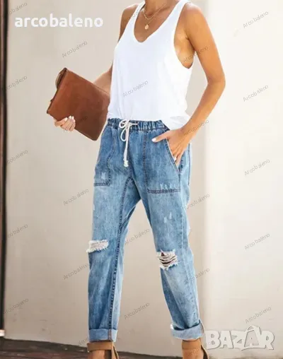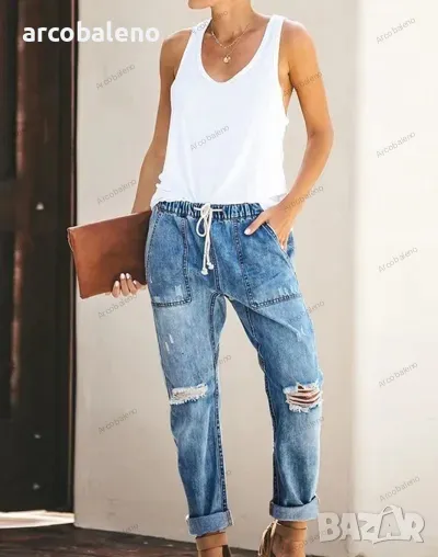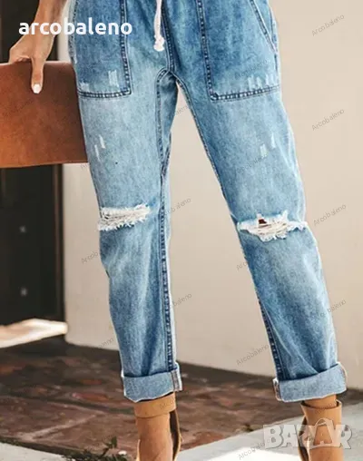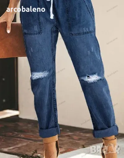 Дамски модни дънки с шнур с еластична талия, 3цвята