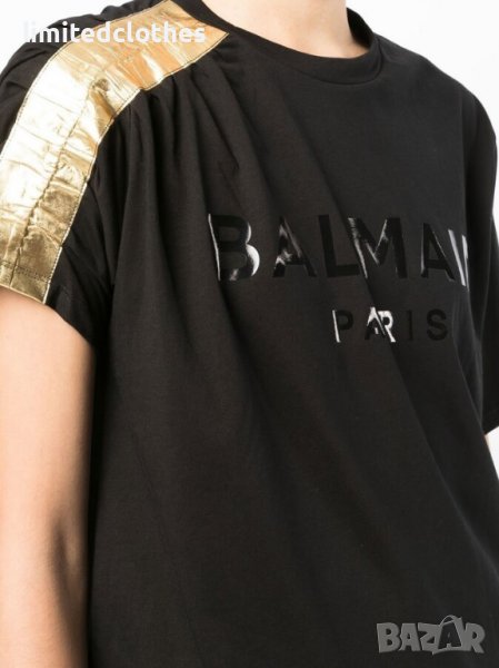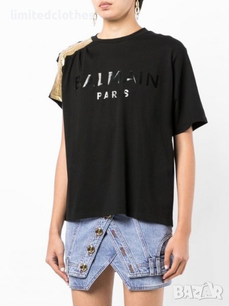 BALMAIN GOLD METALLIC SLEEVE LOGO PRINT Дамска Тениска