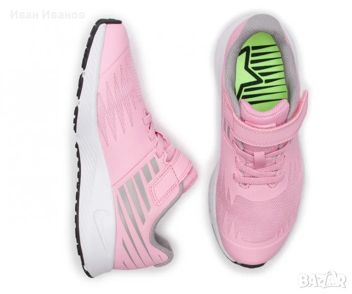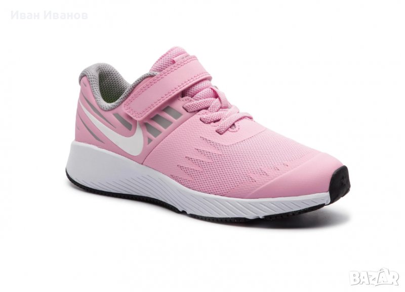 Nike Star Runner (PSV) розово/бели маратонки за момичета от смесена мрежа и еко кожа, в розов вариант с бели и сиви детайли.