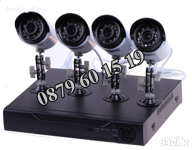 Видеонаблюдение - 4 канален DVR с 4 камери FULL AHD, връзка с интернет и 3G