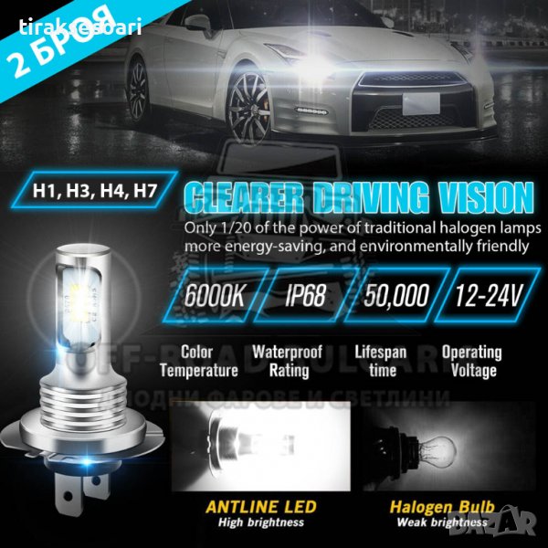 - Комплект LED Диодни крушки H7 за по-мощно и равномерно осветление.
