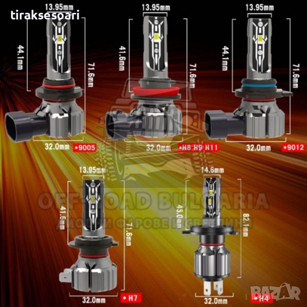 2 БРОЯ LED Диодни крушки Hyper Е2 – H4 200W 12V +300% → Обява 40233533