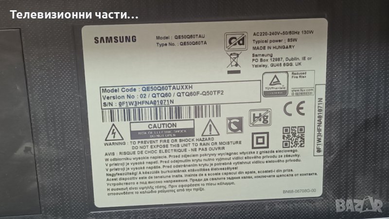 Samsung QE50Q60TAU с дефектен екран-BN44-01058A/BN41-02756C BN94-15733H/V0T6-500SM0-R/CY-RT050HGPV1V