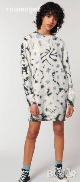 Блузата е, избагрена с Tie- dye техниката за ръчно боядисване.