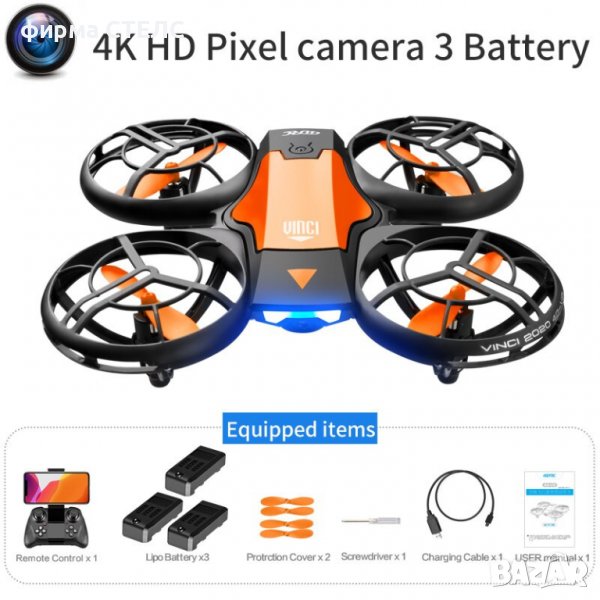 Дрон STELS V8, 4k HD камера с предаване на живо на телефона, WIFI, Батерия 3бр,