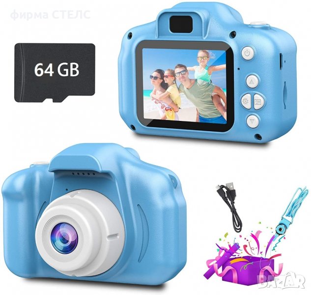 Дигитален детски фотоапарат STELS W300, Дигитална камера за снимки и видео, 64GB SD карта, Игри