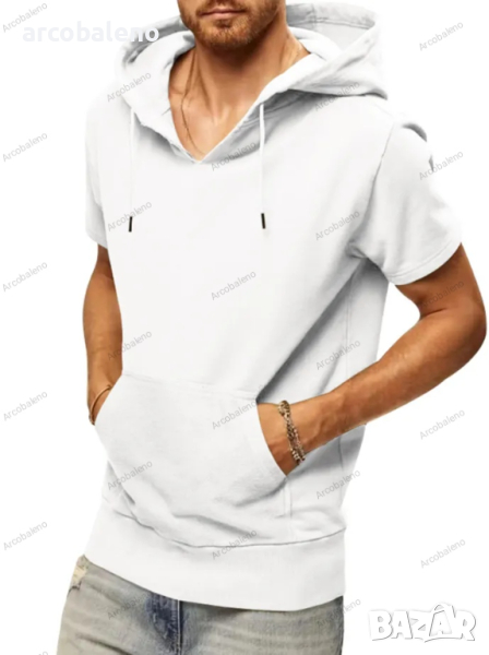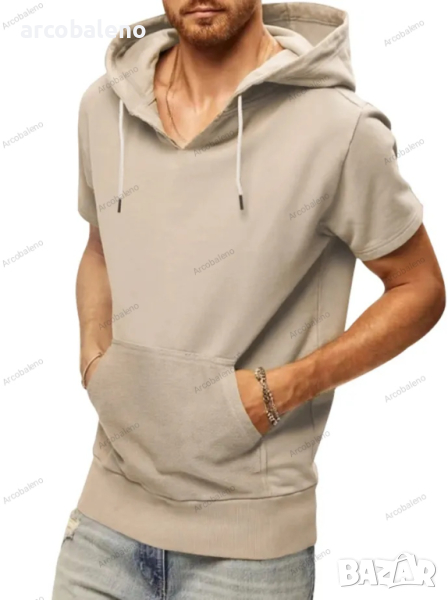 Мъжка ежедневна тениска с качулка и къс ръкав, 5цвята