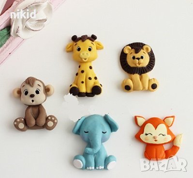 5 бр сафари животни лъв слон маймуна силиконов молд форма калъп гипс кубчета гипсови фигурки с имена → Обява 40244209