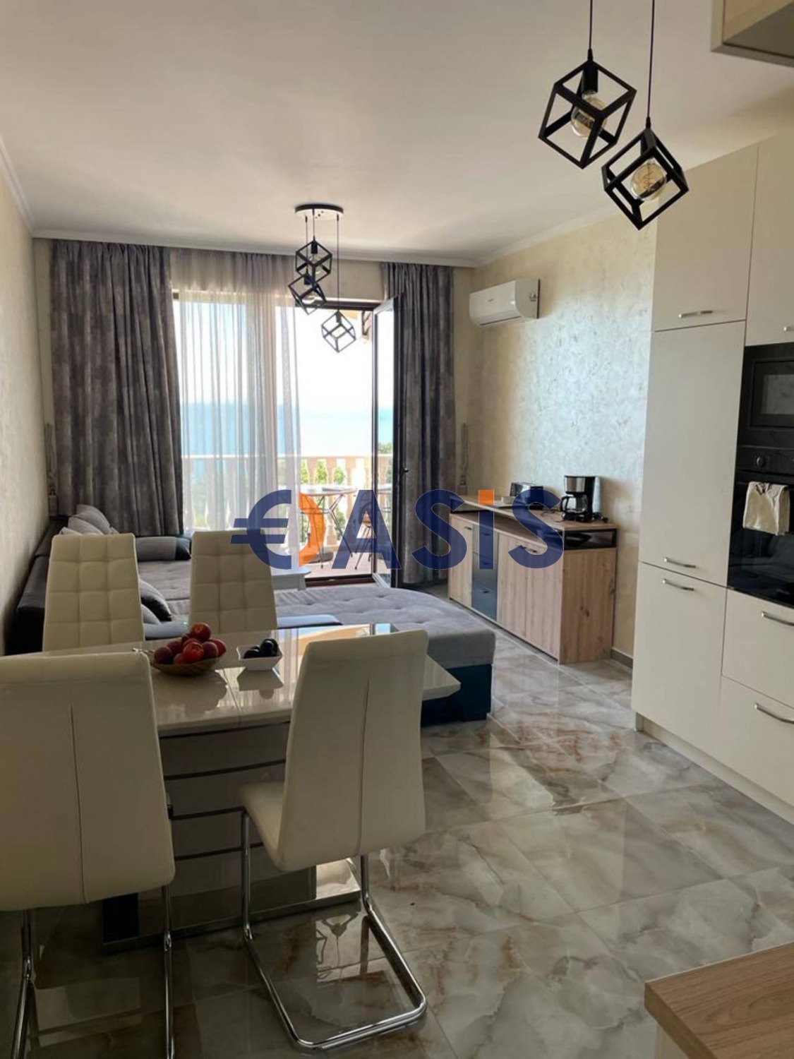 Луксозен имот на първа линия море с панорамна гледка! Апартамент с 2 спални, 2 тераси и 2 санитарни възли с нов ремонт в комплекс 'Валенсия Гардънс'. Напълно оборудван с нови, висококачествени уреди, дизайнерски мебели. Луксозен апартамент в сърцето на нов луксозен комплекс на първа линия море.