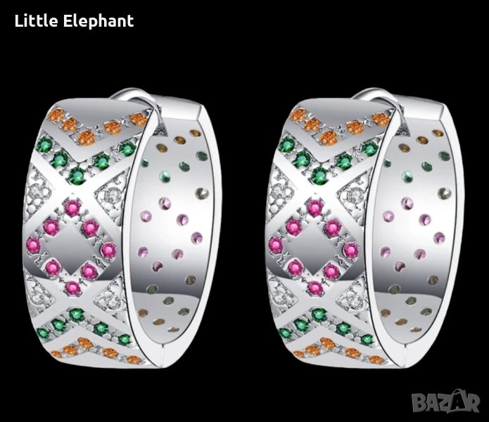 Сребърни висящи обеци Дизайнерски модел,халки,coloured/нови → Обява 40245609