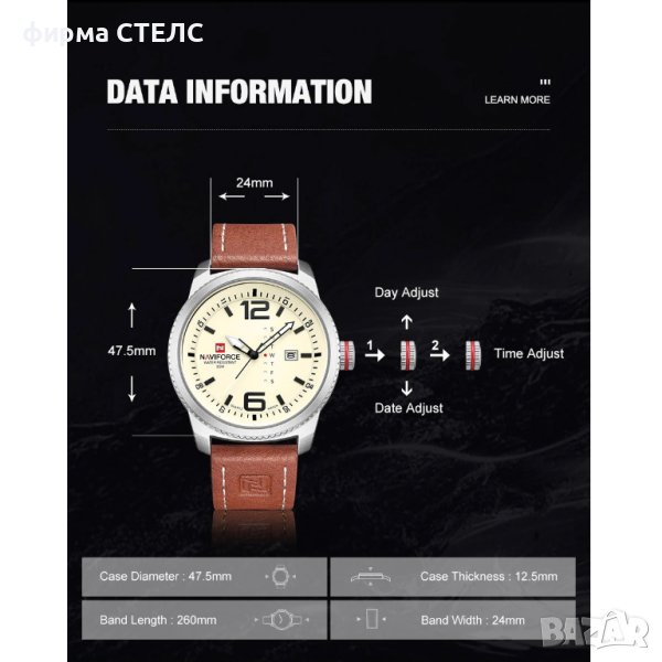 Операционният механизъм е Quartz Japan Seiko VX42.