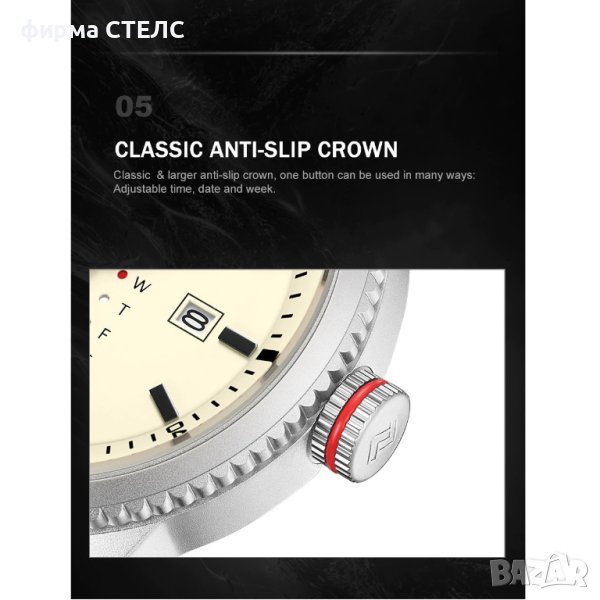 покрит със стомана, а стъклото има висока твърдост. Каишката е изработена от