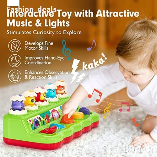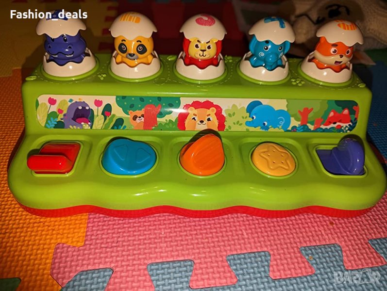 Играчката включва очарователни животински герои и възпроизвежда весела музика, която може да се регулира до желаната сила на звука