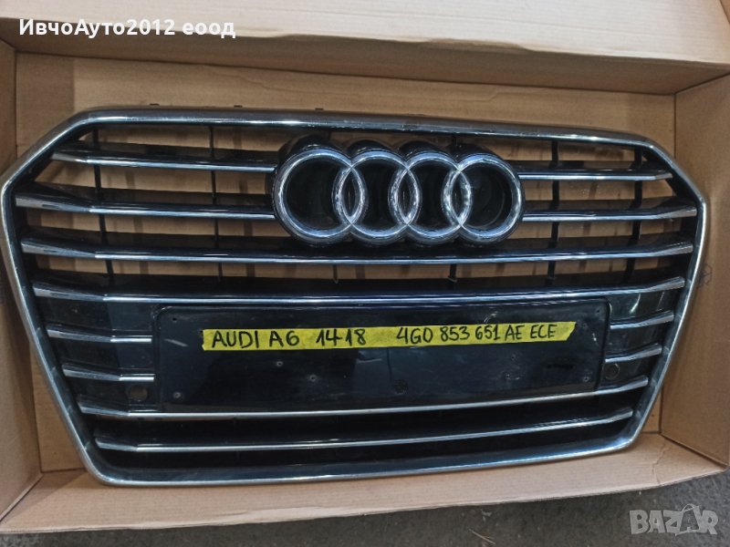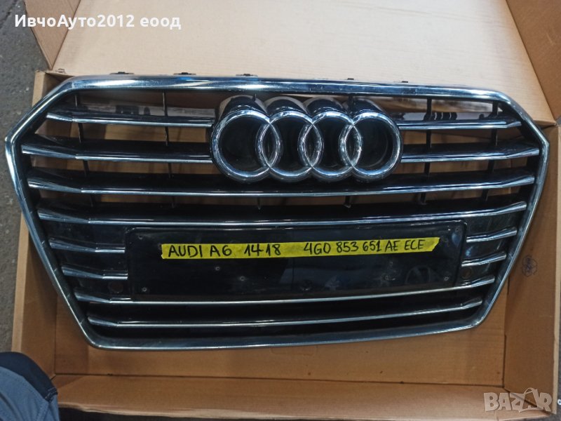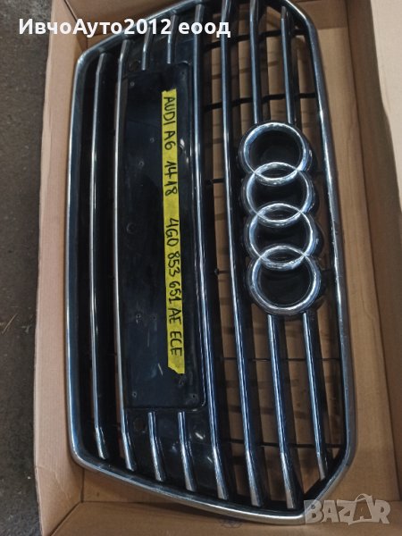 Оригинална предна решетка в бронята с никел лайсни и емблема за Ауди А6 14-18г дребно забележки подлежащи на ремонт никелът е перфектен захватите са здрави