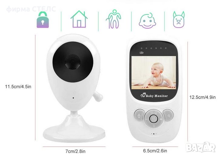 Видео бебефон с камера STELS Lucky Baby, LCD цветен дисплей, Нощен режим, Сензори за светлина и температура