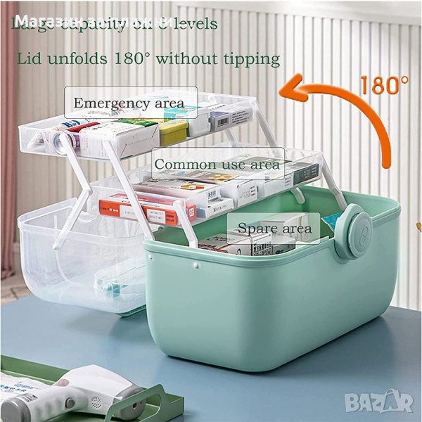 Голяма кутия за лекарства | Голям куфар органайзер за лекарства - РАЗМЕР 33.5х22.5х22.5см - КОД 3870