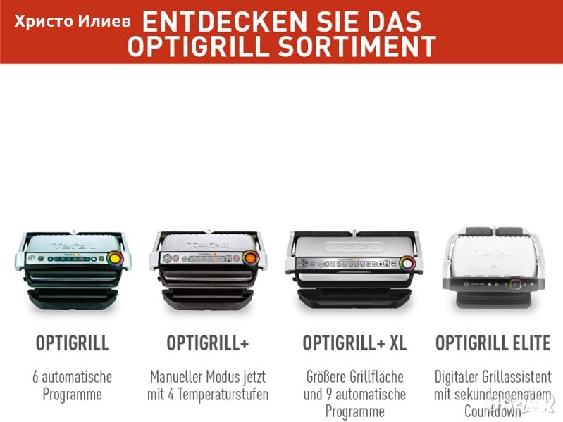 Запознайте се OptiGrill, нашата последна иновация, с ръчен режим, характеризиращ се с четири температурни нива за безкрайни опции за готвене.