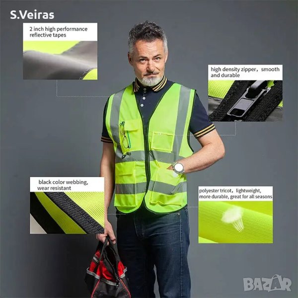 Светлоотразителни жилетки с джобове, Цвят-Жълт.