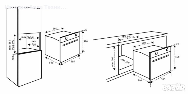 Монтажни размери (ВxШxД): 595x560x550 мм