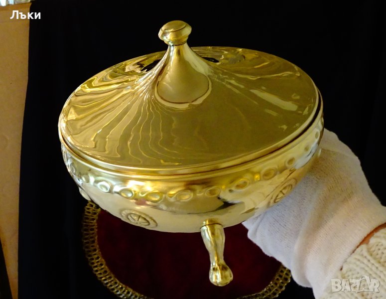 златния блясък и самобитната си красота.Височина 13 см.,височина без капака 7.5