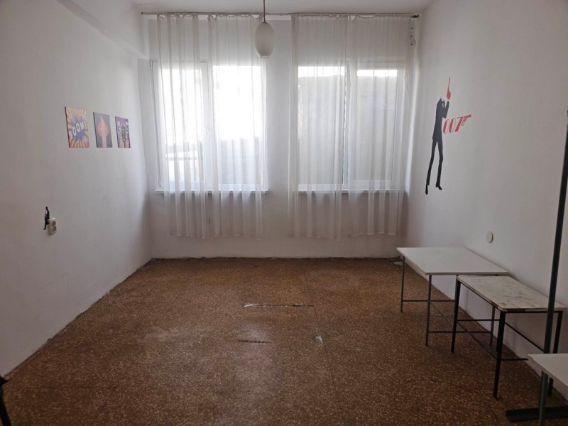 Дава под наем помещение/бивш шивашки цех/ в Промишлена зона Изток, в района на Пневматика. Имота е с обща площ 860 кв.м. и се състои от едно голямо работно помещение, склад, офис, стая за почивка, съблекални и санитарни възли. Помещението е разположено на втори етаж. Имота е подходящ за производствена дейност.