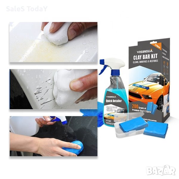 Комплектът за почистване с глина Visbella премахва сериозни замърсявания по автомобила, причинени от дървестни сокове, микро драскотини, животински изпражнения, индустриални петна, остатъци от вода, киселинен дъжд и други.