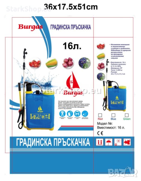 Българска Ръчна Гръбна Градинска Пръскачка 16L – Burgas е страхотен помощник за вашата градина.