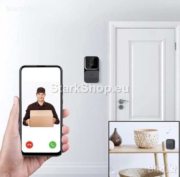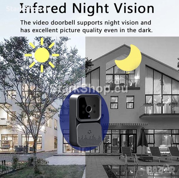 Благодарение на безжичната Wi-Fi технология, смарт звънец с камера и микрофон TUYA позволява гледане от разстояние и разговори с хората пред входната врата. Вграденият сензор за движение ви позволява автоматично да записвате видео, което след това може да възпроизведете на екрана на вашия смартфон.