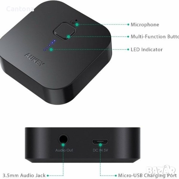 AUKEY Bluetooth трансмитер/приемник, 3,5 mm Aux Bluetooth адаптер за кола/компютър/MP3 плейър/
