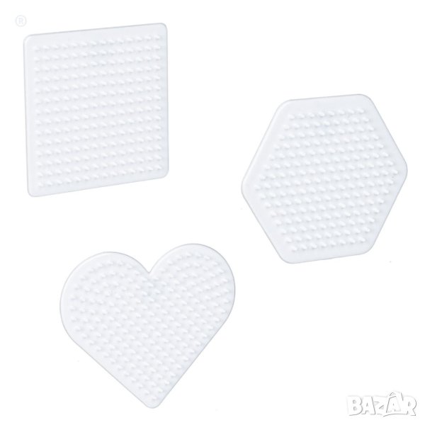Основи за мънистата за гладене във формата на сърце 9.5х8см, квадрат 8х8см и шестоъгълник 8.5х7.5см за забавна игра.