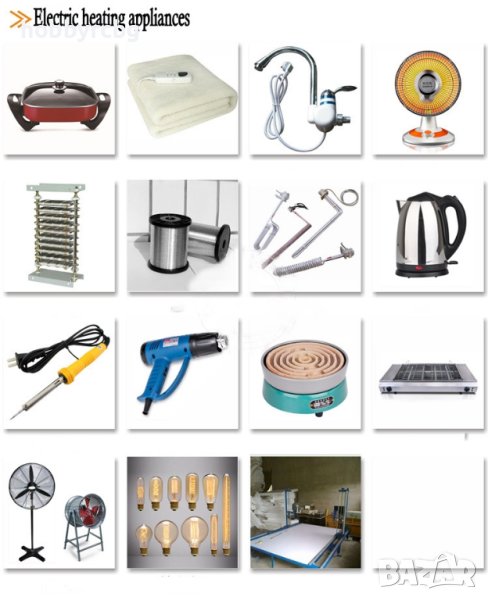 полираща машина, електрически печки, лампи с волфрамова жичка, електрически чайници и други товари.