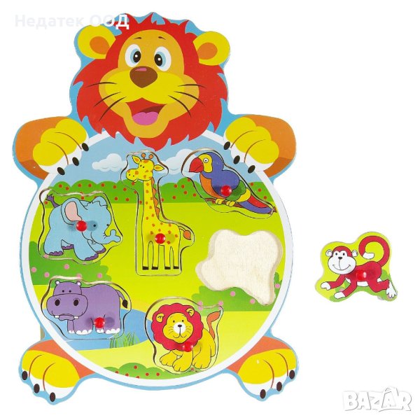 Пъзел дървена карта 6 части с животни.