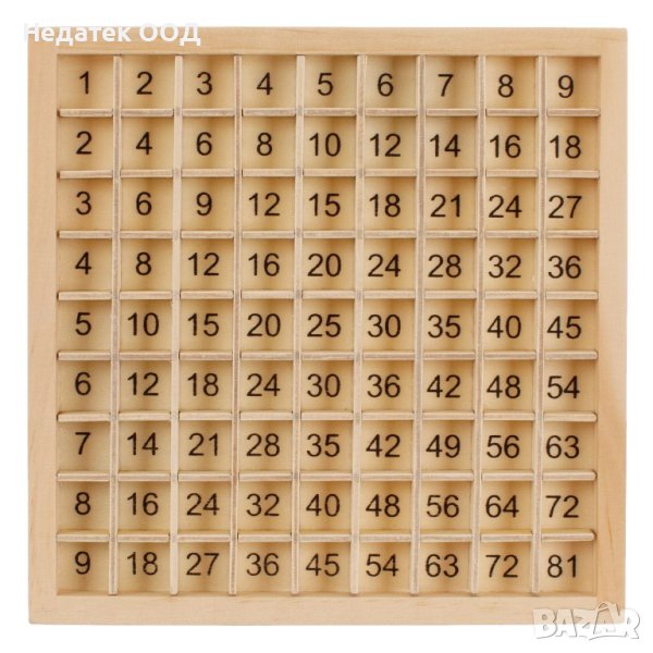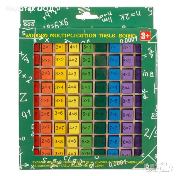 Дървена дъска за предучилищно обучение с ярки цветове. Изпразнете всички кубчета на масата. Върху всяко кубче има продукт и всеки слот на масата има резултат. Детето трябва правилно да изчисли продукта и да постави куба в правилния резултат. Цветовете помагат на детето лесно да разпознае дали е предварителна подготовка на 1, 2, 3 и т.н.