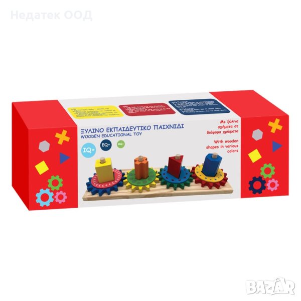 Образователна дървена играчка за упражняване на гъвкавостта на детето с движение на ръцете и когнитивните способности с разпознаване на различни цветове и форми.