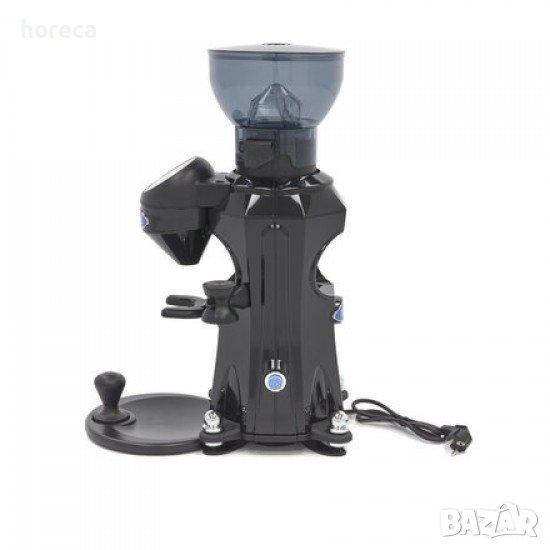 Професионална кафемелачка с контейнер за зърна с вместимост 1000 гр. Можете да смелите 500g кафе на зърна за 5 минути. Можете да регулирате меленето, както и дозировката на смлените зърна и времето за смилане на зърната. Контейнерът за зърна е прозрачен и изработен от пластмаса. Оборудвана с удобен бутален държач и мотор с термична защита. Лостът на дозатора може да се монтира отляво или отдясно. Мелници от закалена стомана Ø 60 мм. За допълнителна стабилност кафемелачката стои на четири гумени крачета. Кафемелачката е не само лесна за използване, но и бърза и лесна за почистване. Контейнерът за зърна, тавата за събиране и капакът се свалят лесно. Много тиха машина <45 dB