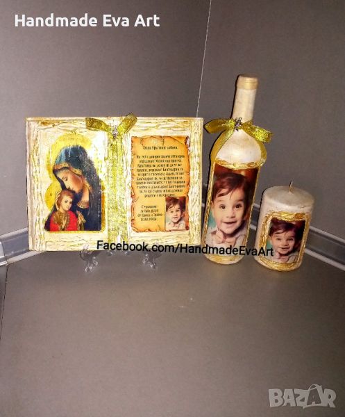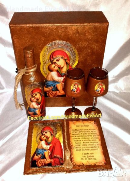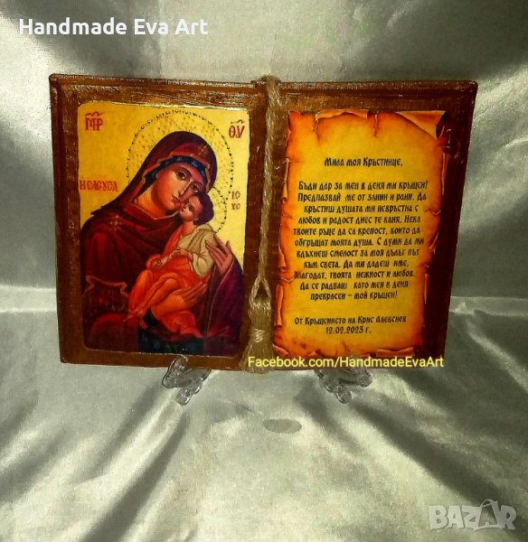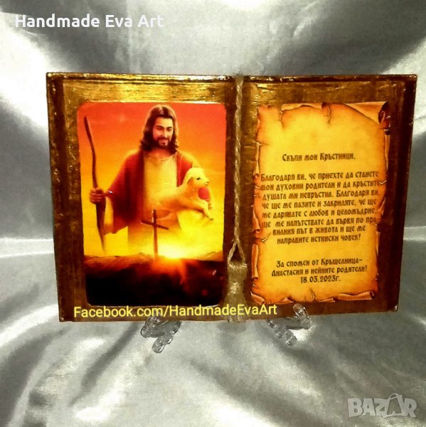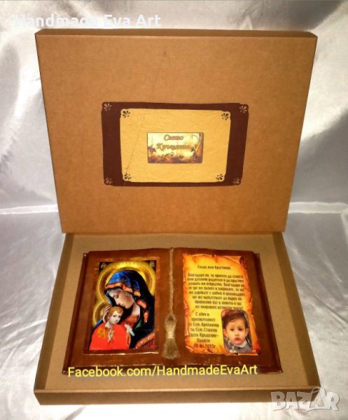 Подарък за Кръстници- Състарена книга с икона/ снимка и поздрав по желание → Обява 40266150