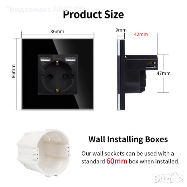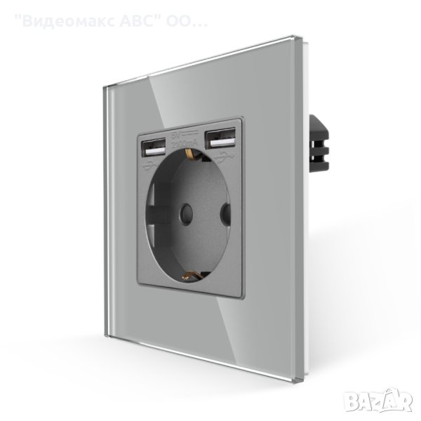 Ел.Контакт 16A, 2хUSB Type-A, комплект с кристална рамка, "LUX-ON" - БЯЛ, СИВ, ЧЕРЕН → Обява 40266529