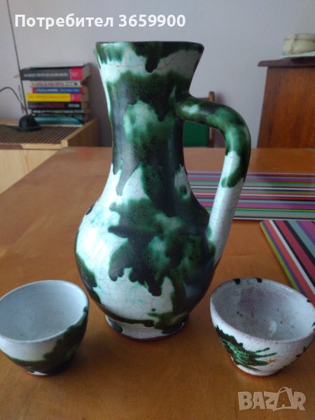 Стари калени каничка и 2 чаши,рисувани → Обява 40267776
