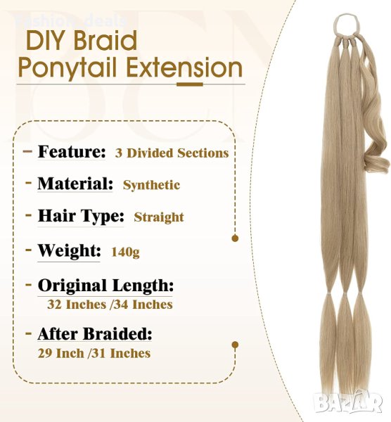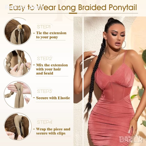 Сплетена конска опашка удобна за добавяне на дължина на косата и промяна на прическата